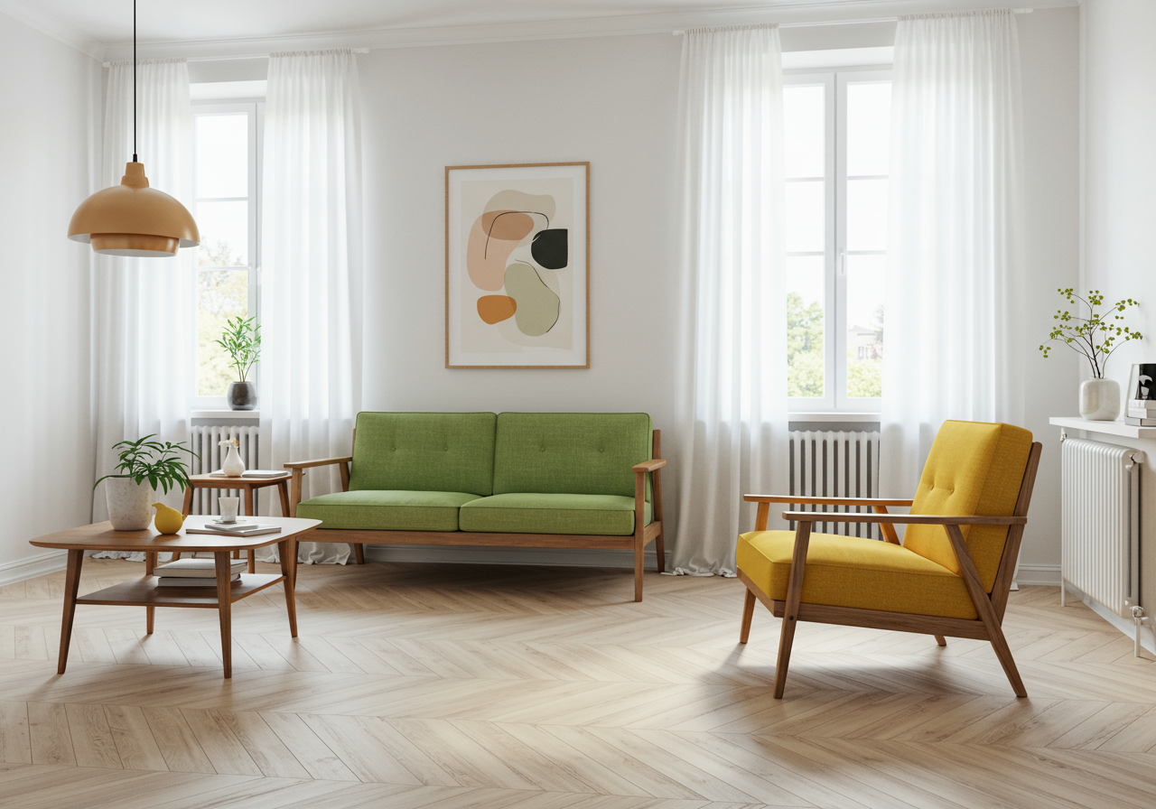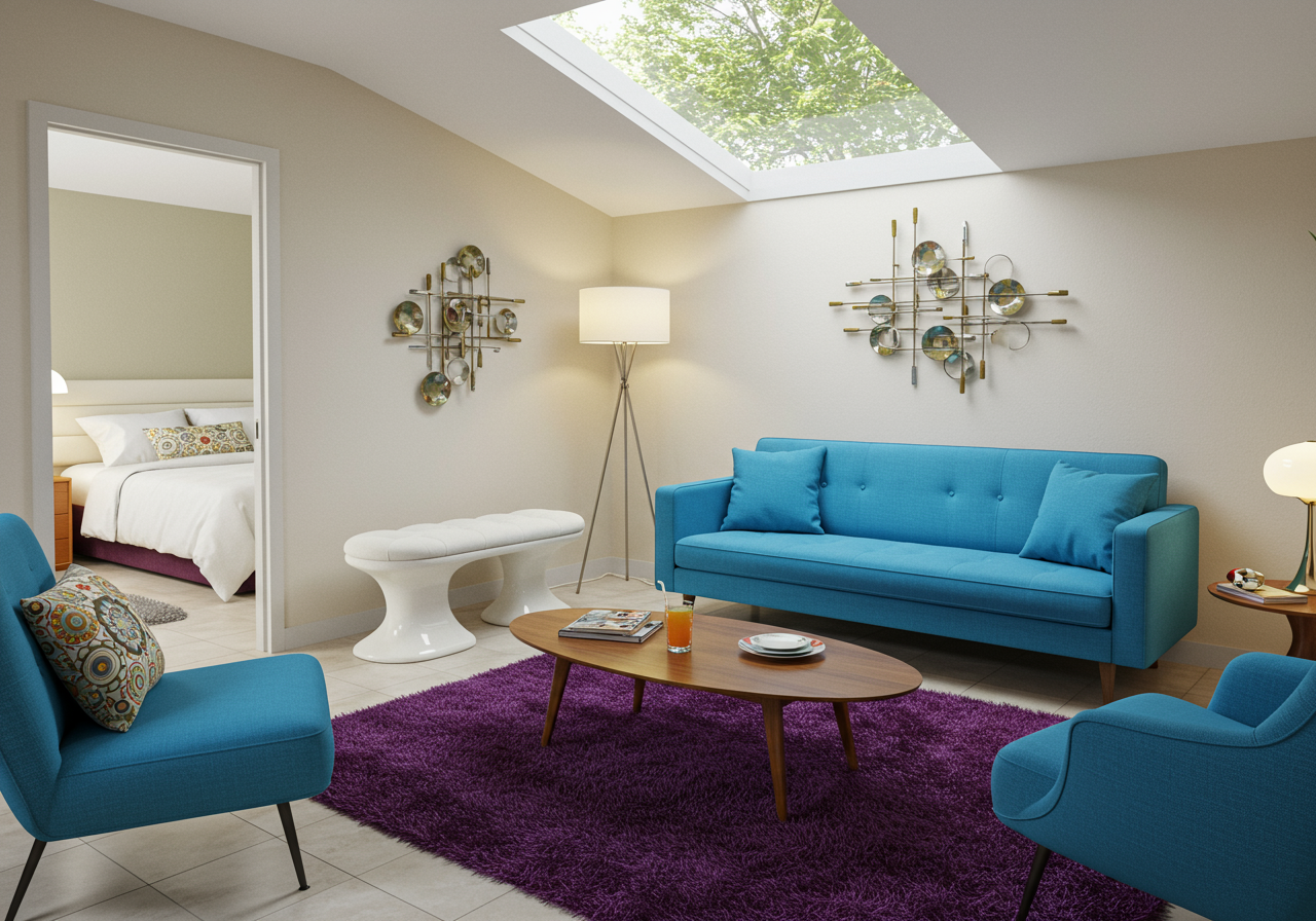 Keeping it simple with small-scale furniture, clean lines, and clutter-free makes your living area attractive and comfortable. Mid-century can be accomplished by simply combining retro, vintage, and modern pieces with one another.